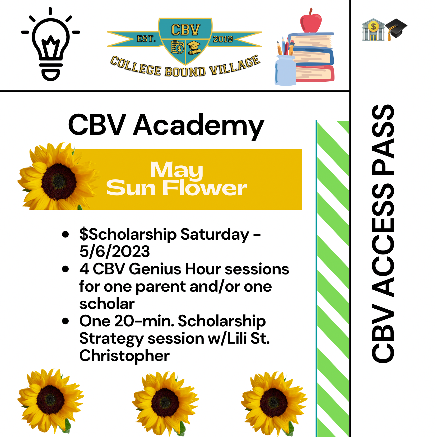* This CBV Genius Hour session is included in the 2023 CBV Academy Gold and Silver Annual Memberships and the May 2023 Sun Flower Access Pass.
