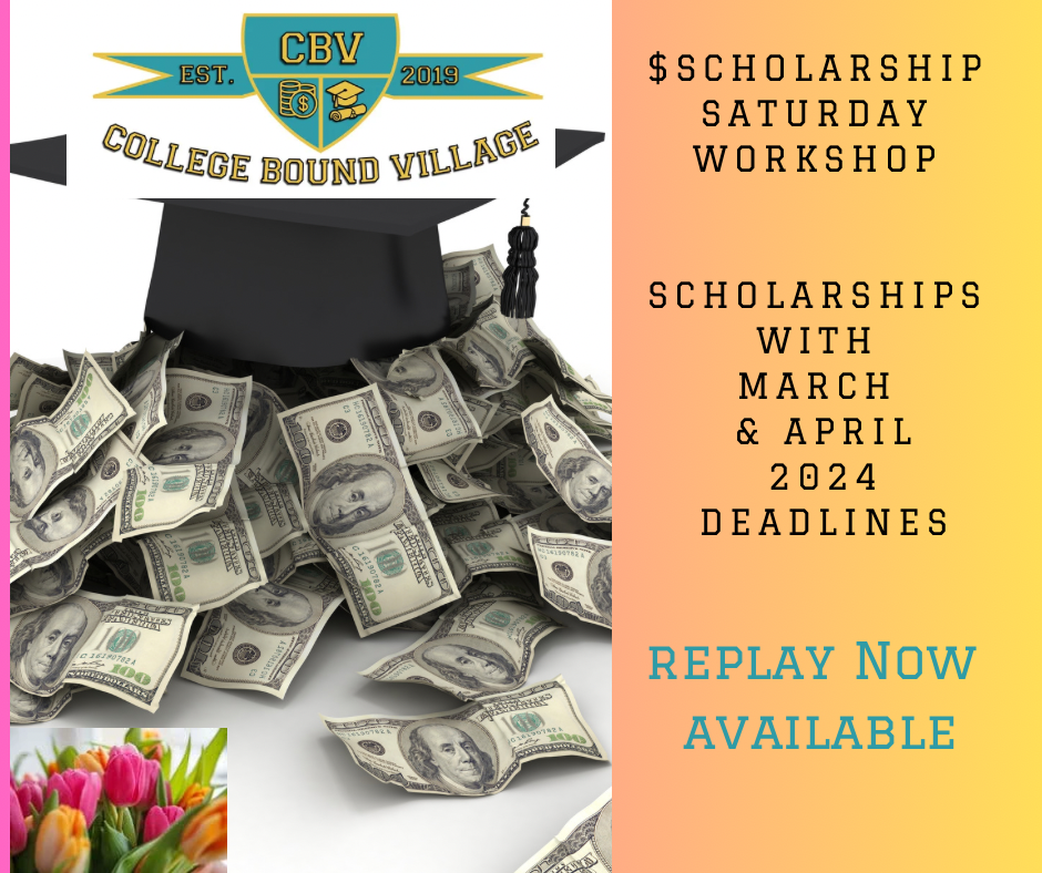Looking for scholarships? Lili St. Christopher guided participants through 30+ scholarship websites/resources with August & September 2023 deadlines during this virtual workshop. Target Audience: - Rising High School Juniors, Seniors, and/or their Parents - Current College students and/or their Parents *This workshop was recorded, and the replay is now available. ** included in all CBV Academy Annual memberships