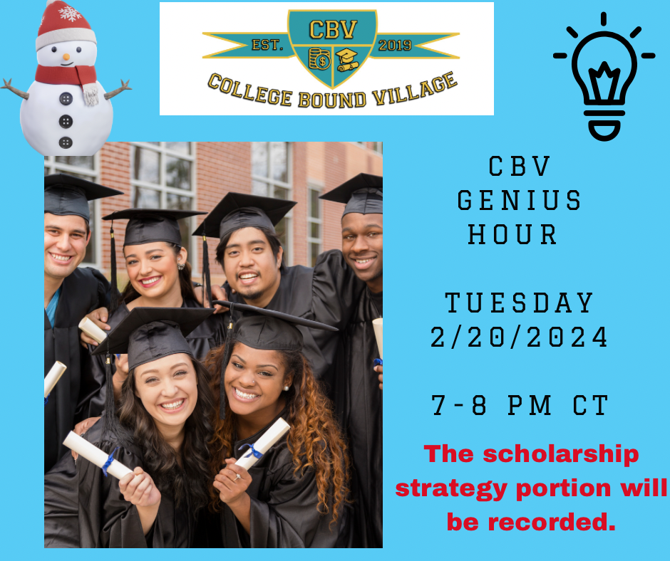 Are you ready to kick-off February with a bang🧨? Get a jump start on scholarships as Lili St. Christopher walks participants through scholarship websites/resources with Feb. and March 2024 deadlines. Target Audience: - Rising High School Juniors, Seniors, and/or their Parents - Current College students and/or their Parents ** included in all CBV Academy Annual VIP memberships.