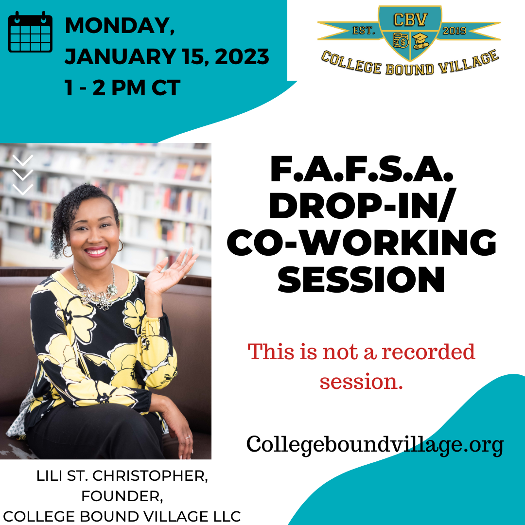 The Free Application for Federal Student Aid (F.A.F.S.A.) is scheduled to open on Sunday, 12/31. This is a drop-in co-working session for parents who have questions or need to make space to complete the form. Lili will not be completing or proof-reading anyone’s F.A.F.S.A. during this session. * This CBV Genius Hour session is included in the 2023 CBV Academy Annual VIP Memberships.
