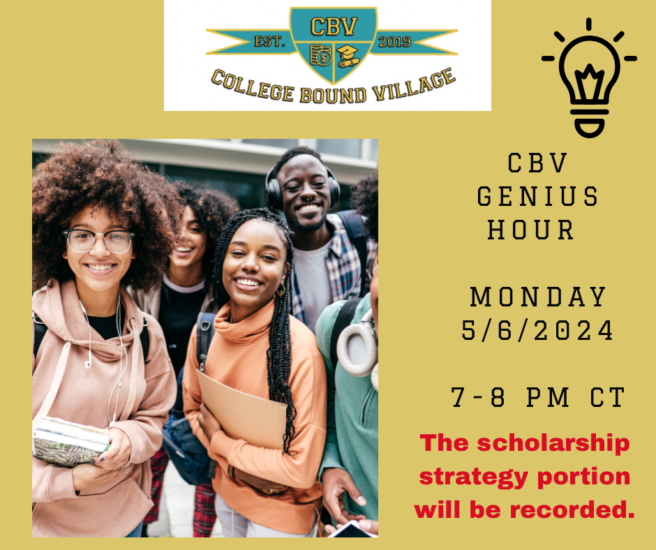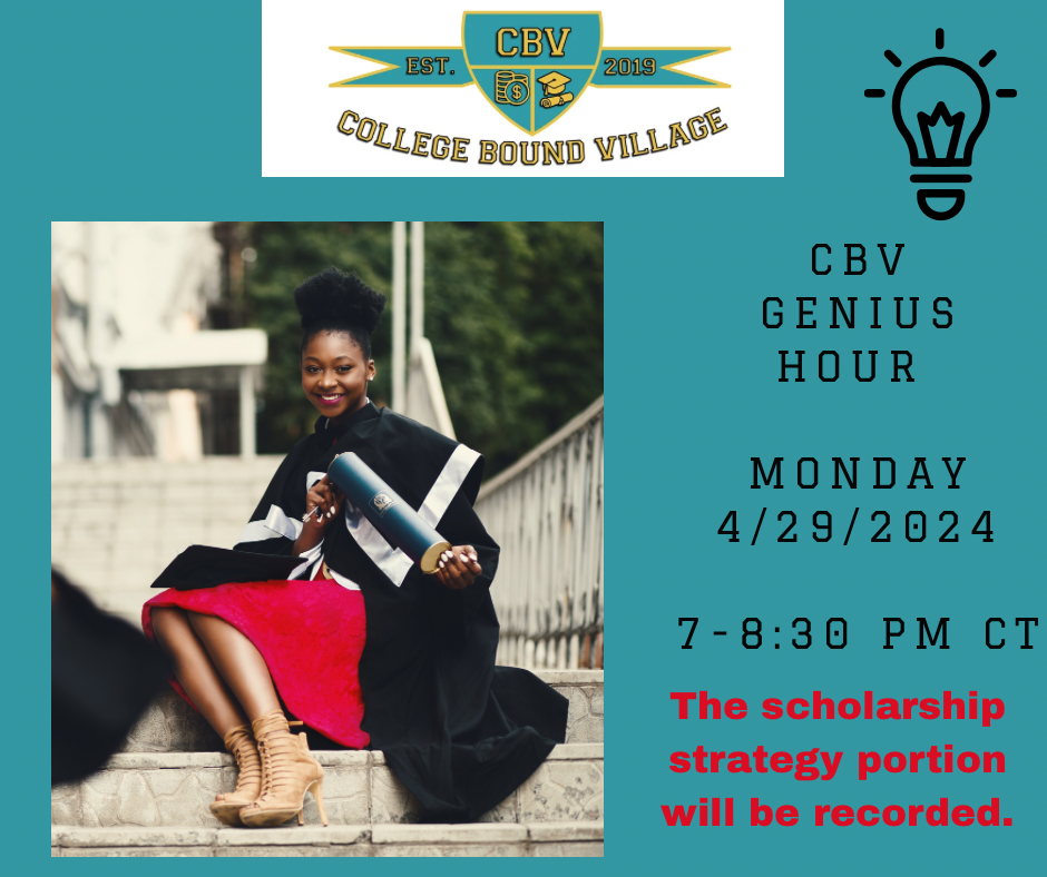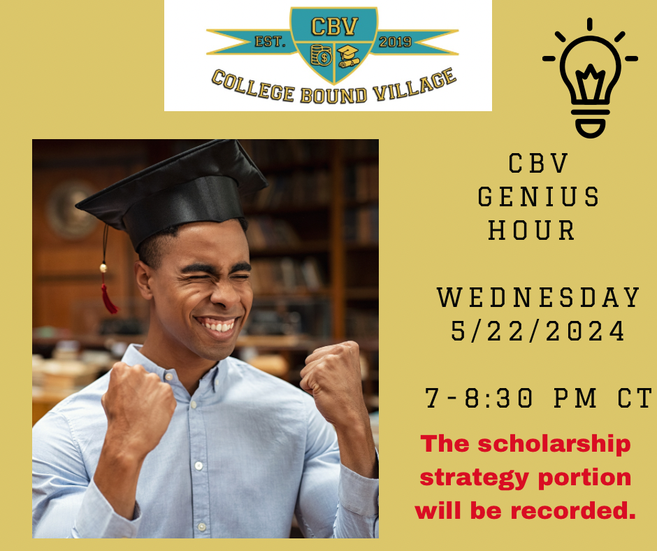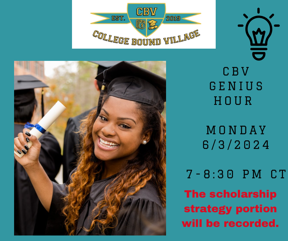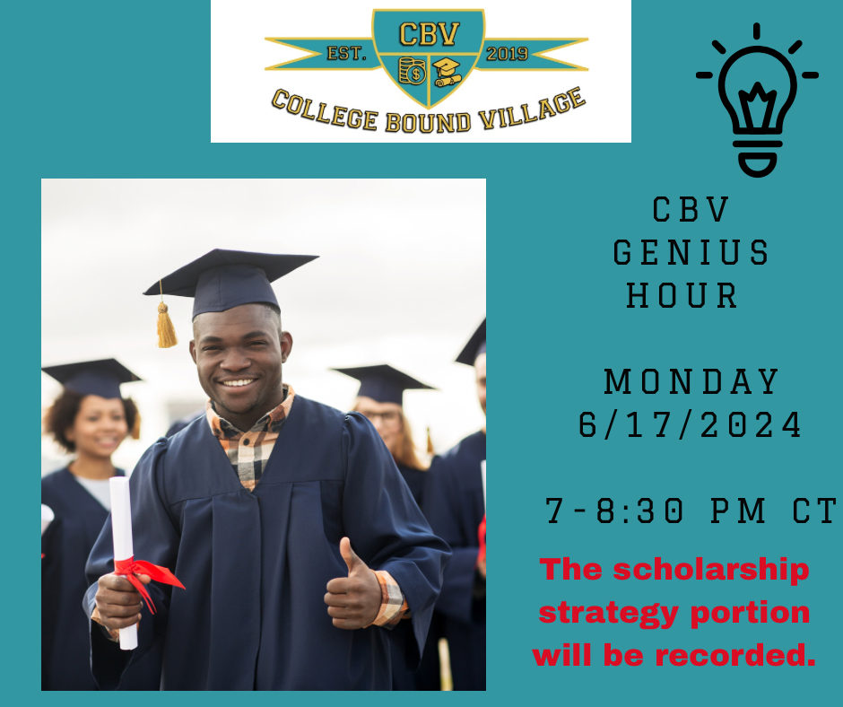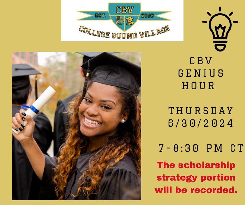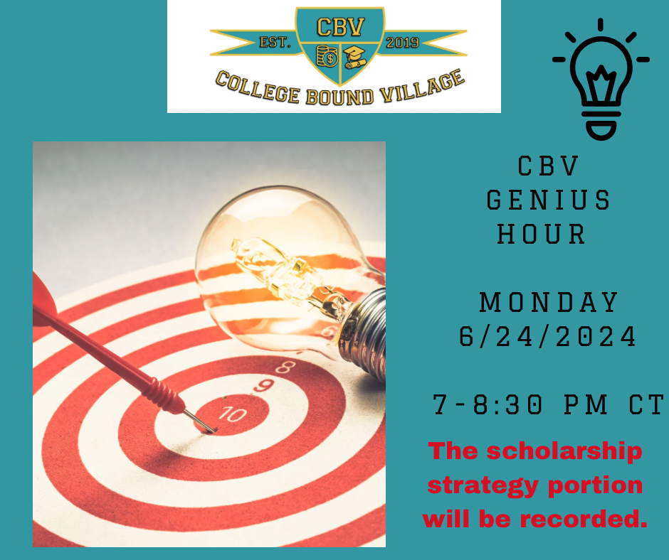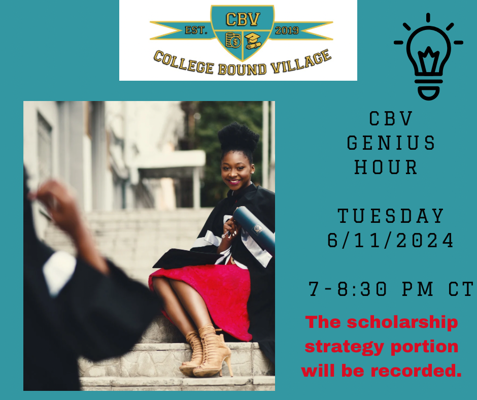 Welcome June🎉! Let’s make ⏰ and space to focus on 🎓college-bound success. During the first recorded 20 mins., Lili will review scholarship websites and answer questions. Afterward, parents and scholars will utilize the Pomodoro method to focus on their most relevant challenges, including Scholarships. * This CBV Genius Hour session is included in the CBV Academy Annual VIP Memberships.