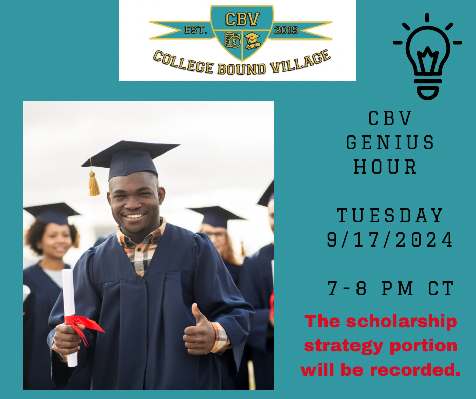 Hello September🎉! Let’s make ⏰ and space to focus on 🎓college-bound success. During the first recorded 20 mins., Lili will review scholarship websites and answer questions. Afterward, parents and scholars will utilize the Pomodoro method to focus on their most relevant challenges, including Scholarships. * This CBV Genius Hour session is included in the CBV Academy Annual VIP Memberships.