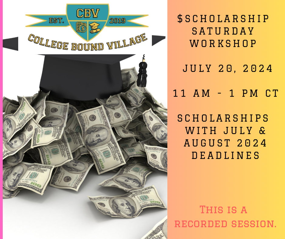 Need 🏦scholarships? Lili St. Christopher guided participants through scholarship websites/resources with November and December 2023 deadlines during this virtual Zoom workshop. Target Audience: - Rising High School Juniors, Seniors, and/or their Parents - Current College students and/or their Parents *This session was recorded and the replay is available. ** included in all CBV Academy Annual VIP memberships.